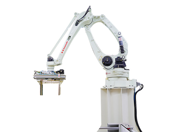 介紹:頂升抓取機構帶有置中、疊包功能,可配合前疊包平衡碼垛效率;專業設計的紙板夾具帶有鉤,可夾取放置一層或兩層紙箱防掉落;機器人采用四軸式Kawasaki機械手臂兼顧性能與成本,將紙箱按自定義的垛型自動碼放到托盤上。 產品別稱:紙箱碼垛機械手、自動流水線紙箱碼垛機、紙箱碼垛、機器人紙箱碼垛、紙箱碼垛機器人
